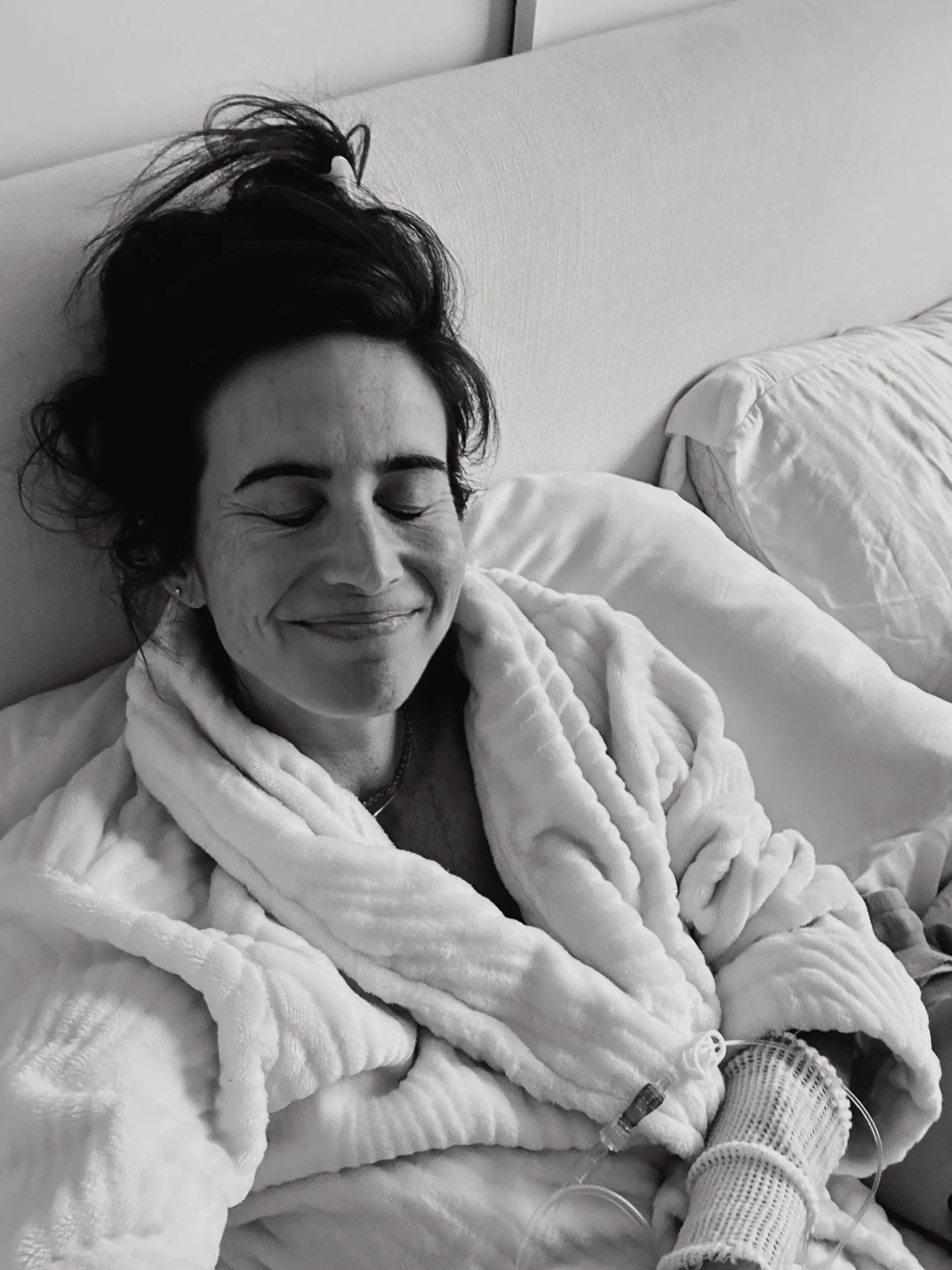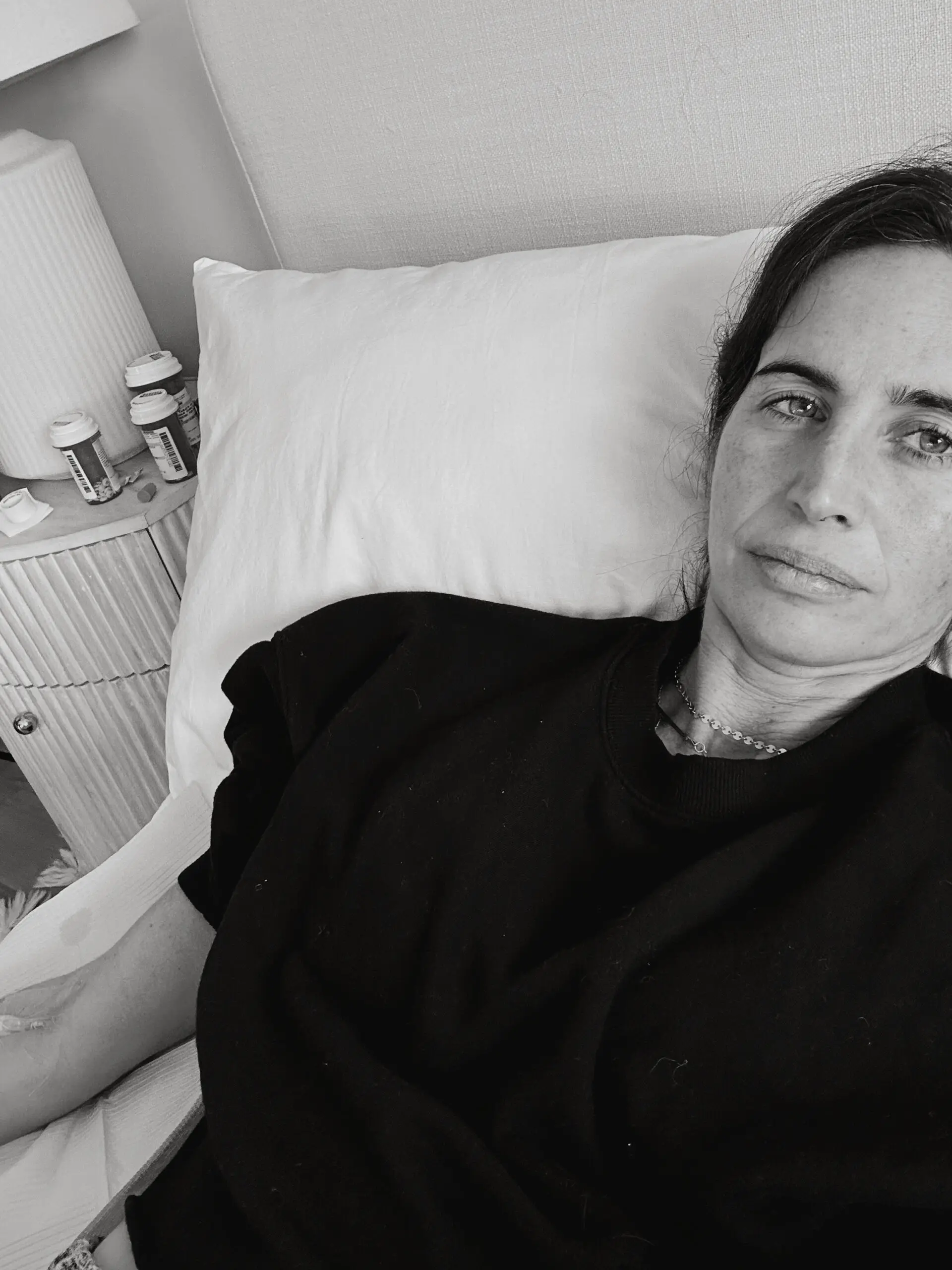 Enter the IV port that got installed in my arm. Making it so that I couldn’t hug or pick up my kids, take a shower or wear anything but my bathrobe (because it was the only sleeve that could fit over the port. But showering felt irrelevant because I couldn’t even stand up for longer than a minute or two.